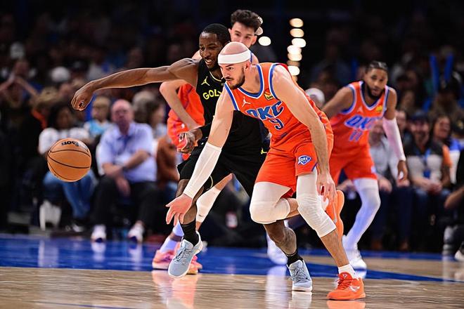 本场比赛中,雷霆的替补外线大闸亚历克斯-卡鲁索(Alex Caruso)的表现依然是非常突出的。卡鲁索全场出场15分16秒,投篮6中3,三分线外3中2,得到了8分2篮板3助攻5抢断的数据,还有3次失误和1次犯规,正负值则是达到了全场最高的+25。卡鲁索在进攻端还是没有什么太多的出手,不过他还是命中了两记三分,他也能够起到传球方面的作用,证明了自己还是能够在进攻端发挥出一些特点的。最关键的是,卡鲁索在防守端的表现算得上是可圈可点,他送出了大量的抢断,给对手制造了巨大的威胁。卡鲁索对于比赛的影响力真是太大了,他的出场时间其实并不多,但是他的正负值却达到了全场最高的+25,这也足以说明他对于球队的正面影响有多大。